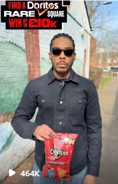 In collaboration with Metro newspaper and influencers providing clues, Doritos hid 100 prize winning packs of rare square Doritos in secret locations nationwide. Each pack held the chance to win incredible prizes, including a whopping £10,000 in cash!